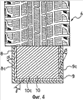 Фиг.2 – вид сверху с местным разрезом, показывающий организацию взаимосвязи между опорной поверхностью и ленточными слоями шины на Фиг.1.