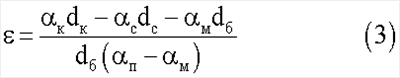 Таким образом, чтобы исключить возникновение напряжений или вакуума в зонах сопряжения деталей гидропневмоцилиндра и таким образом повысить его надежность и долговечность, объемное долевое содержание металлического порошка в буферном слое должно соответствовать значению , вычисленному по формуле (3).
