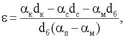 где к, с, м, п – коэффициенты линейного расширения материалов соответственно корпуса, стеклянной втулки, затвердевающего вещества и металлического порошка; dк, dc, dб – значения внешних диаметров соответственно корпуса, стеклянной втулки и буферного слоя.