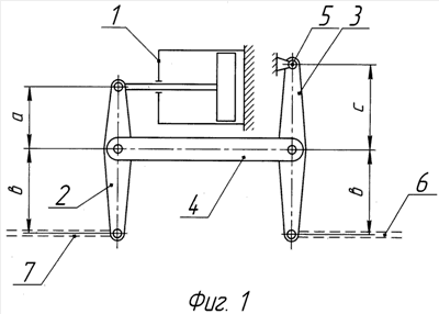 1) в отличие от прототипа ведущие плечи рычагов по длине не равны между собой (c
