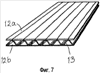 Принципиальный вид типичной конструкции ячеистой панели показан на фиг.7. Ячеистая панель содержит поверхностные плиты 12a и 12b. Изогнутый продольный стальной материал прикреплен между поверхностными плитами для формирования внутреннего слоя 13. Внутренний слой 13 приварен, например с помощью лазерной сварки, к поверхностным плитам 12a и 12b. Направление ячеек ячеистой панели является направлением упомянутых изгибов. Поверхностные плиты ячеистой панели на фиг.7 формируют из нескольких деталей, сваренных с помощью лазерной сварки, в направлении внутреннего слоя, но поверхностные плиты 12a и 12b можно также формировать из одной детали с размером полной ячеистой панели.