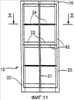– Фиг.11 – вид спереди, соответствующий виду, показанному на фиг.2, и демонстрирующий подкрепляющий элемент конструкции, которым может быть оборудована дверь, показанная на фиг.2.