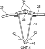 На фиг.8 показаны две полностью открытые панели 18. На этом чертеже можно видеть вторую связь 50 (например, подобную связи 48), которая соединяет заднюю пластину 28 каждой панели 18 с центральной стойкой 21. Таким образом, пластины 26 и 28 удерживаются безопасным образом и не могут быть высвобождены.