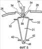 Действительно, как это можно видеть на фиг.3, отмечается, что каждая задняя пластина 28 удерживается при помощи фиксированных элементов так, что соответствующая передняя пластина 26 остается на своем месте. На этом чертеже также можно видеть, что одна сторона каждой задней пластины 28 опирается на четвертый фиксированный выступ 42 и другая сторона этой пластины опирается, посредством упомянутого клина 39 и детали разведения на определенное расстояние 38, на первый фиксированный выступ 30. Таким образом, если некоторое усилие воздействует в направлении от задней части самолета к его передней части на заднюю пластину 28, это усилие полностью воспринимается упомянутыми выступами 42 и 30. Таким образом, воздействующее в этом случае усилие не оказывает влияния на поворотные стопоры, способные освободить соответствующую панель 18.