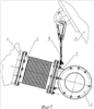 Перед началом работ производят сборку пароотводящего элемента, для чего последовательно соединяют сильфон 1, патрубок 3, сильфон 2 с обеспечением герметичности стыков, закрепляют тросовую подвеску 14 на одном из фланцев патрубка 3.