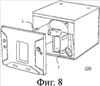 В качестве альтернативы, устройство 100 для обвязки бумажных денег с печатным модулем в соответствии с данным вариантом воплощения может дополнительно включать в себя гнездо L, как показано на фиг.8, для поддержки обвязочной ленты, подаваемой из принтера. Гнездо L проходит от одного бокового участка корпуса, который расположен противоположно входному отверстию I для денег, в устройство для обвязки на заданную длину.