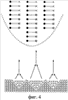 на фиг.4 представлена гипотетическая схема образования впадин на поверхности подложки при поглощении атомов подложки структурными каналами нанотрубок зонда сканирующего туннельного микроскопа;