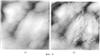 На фиг.11 приведен пример возникновения столбчатой наноструктуры на поверхности пленки золота после эмиссии в режиме равномерного сканирования всего поля исходного кадра в течение 100 с с параметрами атомной эмиссии и сканирования, аналогичного режиму рис.8. Размер этих кадров – 1000×1000 нм, разброс высот на обеих кадрах – около 180 нм.