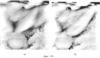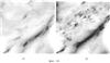 Интересен также результат десорбции при приложении к зонду напряжения +5 В и равномерном сканировании по всему кадру в течение 20 с на расстоянии 1 нм зонда от поверхности. Зонд из монокристалла оксидной бронзы здесь выполняет функцию «наногеттера», затягивая в себя все нанопорошинки золота, слабо прикрепленные к подложке. После работы этого «наногеттера» поверхность пленки золота (фиг.10, кадр слева), на которой много нанозерен диаметром 2-10 нм, стала иметь явно выраженный пористый характер с порами диаметром 2-10 нм и глубиной также 2-10 нм. Размер кадров по фиг.10 – 200×200 нм, максимальный разброс высот – около 20 нм на исходном кадре и около 30 нм на кадре с порами.
