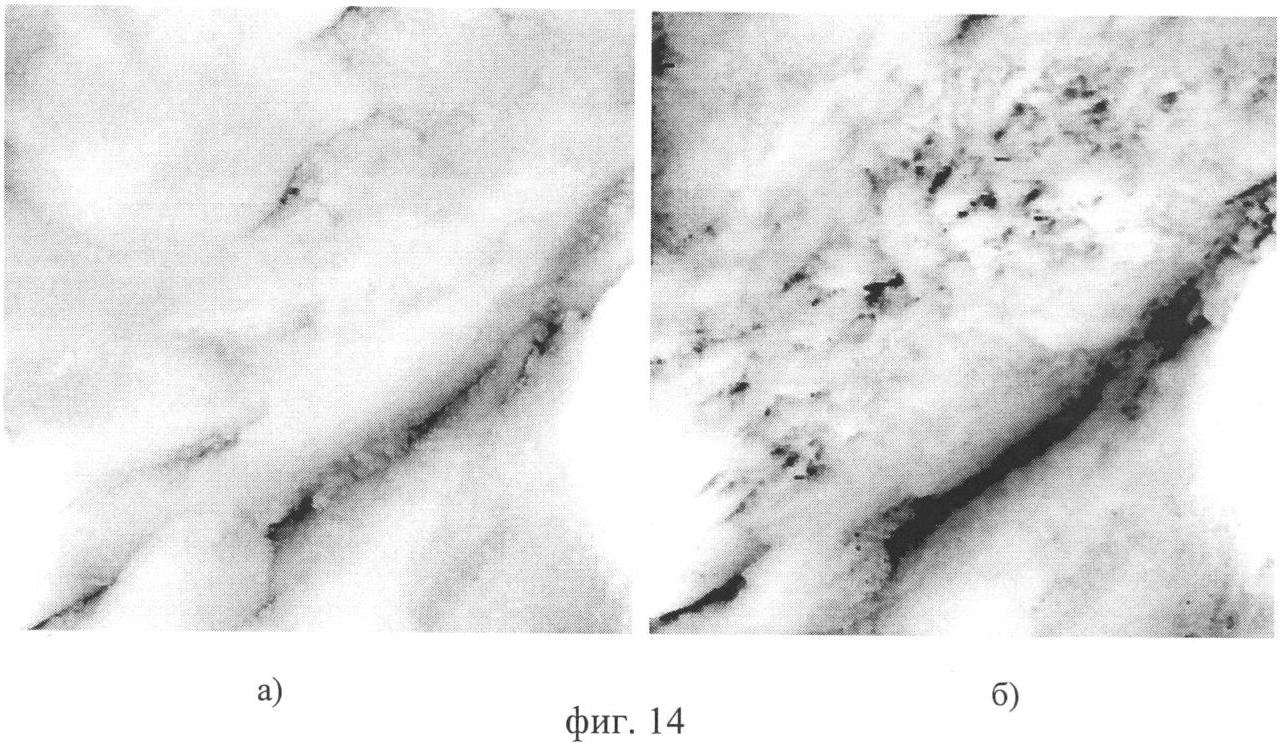 на фиг.14 показан процесс снятия нанозерен десорбцией с поверхности и переносом их в нанотрубки монокристалла оксидной бронзы (наногеттер).