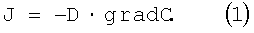 При нагревании монокристалла -фазы при отсутствии поля внешних сил, в соответствии с первым законом Фика, плотность потока диффузии J, г·см2·с-1, атомов натрия в структурных каналах пропорциональна коэффициенту диффузии D и градиенту концентрации С: