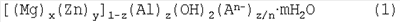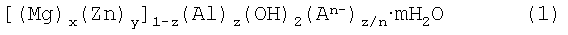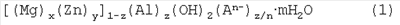 1. Гидроталькит, представленный нижеследующей формулой (I)