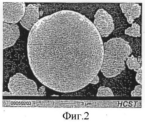 На фиг.1 и 2 приведены фотоснимки полученной таким образом вольфрамовой кислоты, сделанные на растровом электронном микроскопе (фиг.1: 500-кратное увеличение, фиг.2: 5000-кратное увеличение). Отчетливо видно, что отдельные частицы порошка имеют сферическую морфологию.