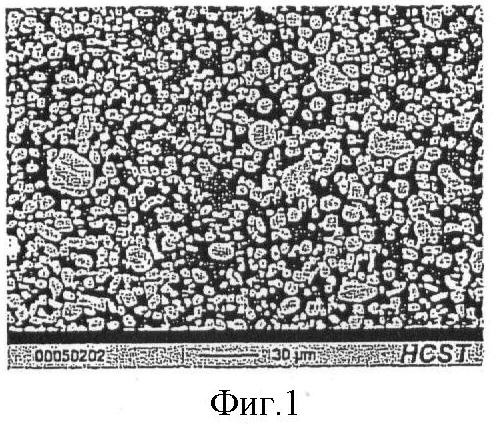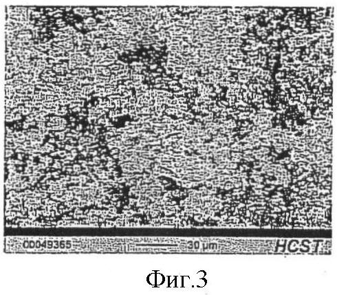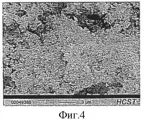 На фиг.3 и 4 приведены снимки полученной таким образом вольфрамовой кислоты, сфотографированные на растровом электронном микроскопе (фиг.3: 500-кратное увеличение, фиг.4: 5000-кратное увеличение). Отчетливо видно, что вольфрамовая кислота обладает не сферической, а хлопьевидной морфологией.