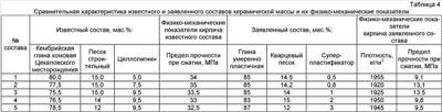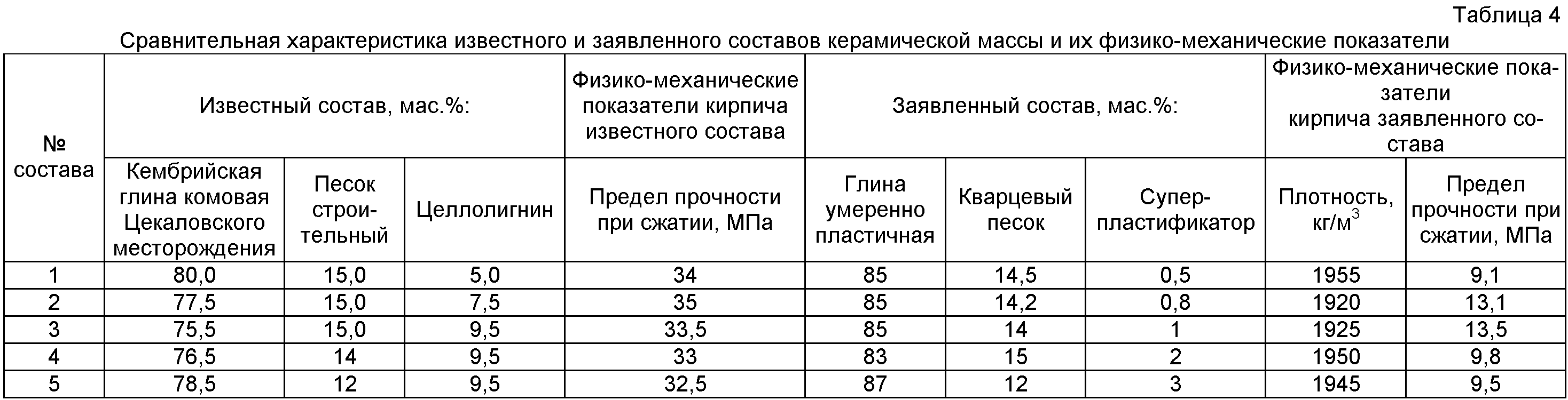Усредненный состав керамического кирпича приведен в таблице 4.