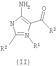 где R1 представляет собой C1-С10алкил или С3-С10циклоалкил, каждый из которых возможно и независимо замещен 1 заместителем, выбранным из С3-С10циклоалкила или арильной группы; арил; R2 представляет собой С1-С10тиоалкил; R3 представляет собой C1-С10алкокси, возможно замещенный одним С1-С10алкокси или одним нитрилом, где указанная группа алкокси может быть циклической и может содержать один гетероатом О; где указанный арил означает ароматическое кольцо, имеющее от 6 до 10 атомов углерода, включающее моно- и бициклические соединения; за исключением этилового эфира 4-амино-1-метил-2-(метилтио)-1Н-имидазол-5-карбоновой кислоты; [4-амино-1-метил-2-(метилтио)-1Н-имидазол-5-ил]фенил-метанона; [4-амино-2-(метилтио)-1-фенил-1Н-имидазол-5-ил]фенил-метанона; и этилового эфира 4-амино-2-(метилтио)-1-фенил-1H-имидазол-5-карбоновой кислоты.