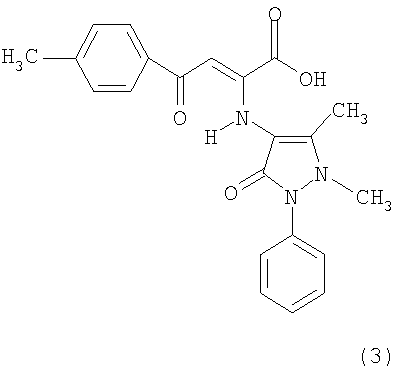 Аналогом по структуре заявляемым соединениям является 2-(1,5-диметил-3-оксо-2-фенил-2,3-дигидро-1Н-пиразол-4-иламино)-4-(4-метоксифенил)-4-оксобут-2-еновая кислота (3) [Рубцов А.Е., Махмудов P.P., Ковыляева Н.В., Просяник Н.И., Бобров А.В., Залесов В.В. Синтез, противовоспалительная и анальгетическая активность производных 4-аминоантипирина. Хим-фарм. журн., 2002, т.36, 11, с.31-351] формулы