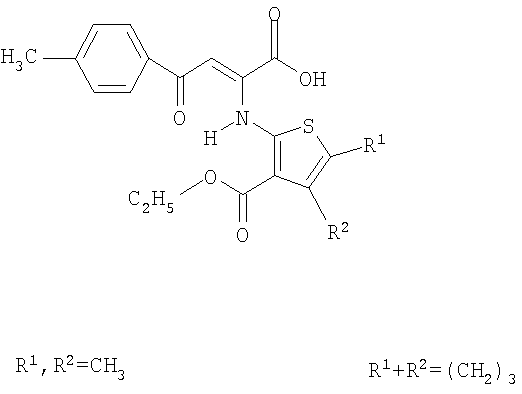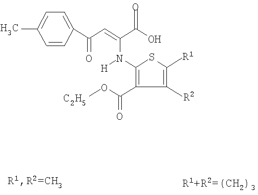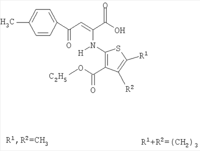 4-(4-Метилфенил)-4-оксо-2-[3-этоксикарбонил-4,5-R2,R1 -тиофен-2-иламино]бут-2-еновые кислоты общей формулы:
