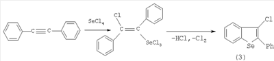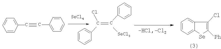 В предлагаемом способе используются в качестве исходных соединений циклонона-1,2-диен и алка-1,2-диены, EtMgBr и Se. В известном способе бициклический селенофен (3) получают из дифенилацетилена и тетрахлорида селена (SeCl4).