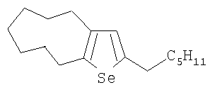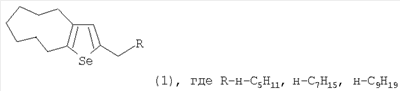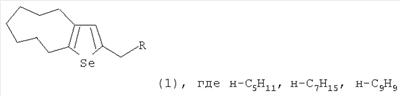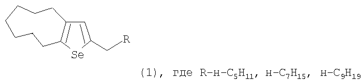 Известным способом не могут быть получены 2-алкил-5,6,7,8,9,10-гексагадро-4Н-циклонона[b]селенофены общей формулы (1).