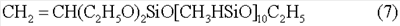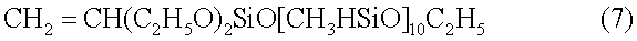 Пример 7. Перегруппировка винилтриэтоксисилана с олигометилгидридсилоксаном при мольном соотношении реагентов соответственно 1:10 и температуре 75°С.