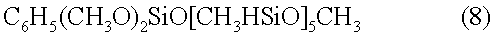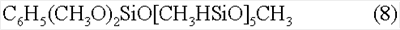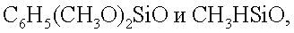 Способ получения аналогичен приведенному в примере 7. Берут 85,8 г (0,43 моля) фенилтриметоксисилана, 130 г олигометилгидридсилоксана, 6,5 г катализатора и 10,8 г доломита для нейтрализации смеси. Получено 207 г бесцветной прозрачной жидкости формулы: