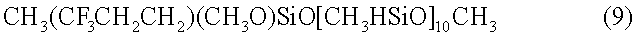 Пример 9. Перегруппировка метилтрифторпропилдиметоксисилана с олигометилгидридсилоксаном при мольном соотношении реагентов соответственно 1:10 и температуре 90°С.