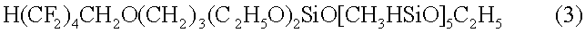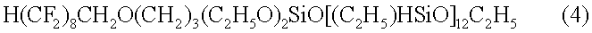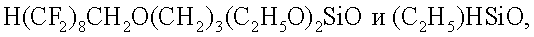 с содержанием HSi 0,68 мас.%, отношением атомов кремния в звеньях H(CF2)4CH2O(CH2)3(C2H5O)2SiO и CH3HSiO, равным соответственно 1:5,3, и вязкостью 25 10 сСт.