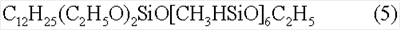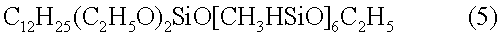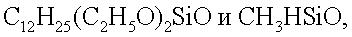 Способ получения аналогичен приведенному в примере 1. Берут 90,0 г (0,27 моля) додецилтриэтоксисилана, 65,2 г олигометилгидридсилоксана и 4,9 г катализатора и 9,6 г доломита для нейтрализации смеси. Получено 147 г бесцветной прозрачной жидкости формулы:
