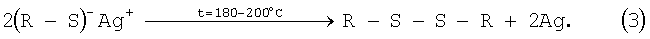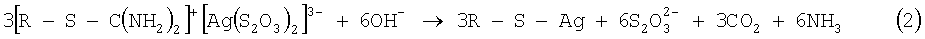 Изобретение относится к технологии получения наночастиц благородных металлов из водных растворов их прекурсоров, таких как серебро, золото, платина. Известен способ экстракции благородных металлов из кислых растворов s-алкилизотиуроний хлоридами без получения наночастиц металлов (Ас СССР Известен также способ получения наночастиц благородных металлов концентрированием из водных растворов их прекурсоров экстракцией, ионной флотацией или флотоэкстракцией и последующее их восстановление (RU 2147487 С1, МПК B22F 9/24, 20.04.2000), который взят нами в качестве прототипа. В известном способе используется огнеопасный углеводород, применяемые эмульгаторы имеют определенный гидрофильно-липофильный баланс и этим ограничивается ассортимент их использования. Кроме того, обратные микроэмульсии с трудом расслаиваются. Для этого необходимы дополнительные растворители или центрифуга. Технической задачей изобретения является упрощение способа получения наночастиц благородных металлов. Технический результат достигается тем, что в известном способе получения наночастиц благородных металлов, включающем концентрирование экстракцией, ионной флотацией или флотоэкстракцией прекурсоров благородных металлов из водных растворов с последующим их восстановлением, в качестве экстрагентов, фотореагентов и восстановителей используют растворы s-алкилизотиуроний галогенидов в углеводородном растворителе, образовавшийся углеводородный раствор прекурсора благородного металла с алкилизотиуроний галогенидом перемешивают с водным раствором гидроксида щелочного металла при рН 9-11, образовавшийся осадок отделяют центрифугированием, промывают углеводородом, водой и этанолом, сушат в вакууме, полученный осадок растворяют в углеводороде до получения раствора с концентрацией 5-10%, раствор помещают в автоклав, нагревают до температуры 180-200°С, после чего постепенно охлаждают до комнатной температуры. В качестве s-алкилизотиуроний галогенидов используют хлориды, бромиды, иодиды с алкильной цепью от C8 до C18, а в качестве углеводородов – толуол, ксилол, этилбензол, смесь толуола (20%) с изоамиловым спиртом, керосин. Применение в качестве ПАВ s-алкилизотиуроний галогенидов (АТГ) позволяет использовать их в качестве экстрагентов, флотореагентов и восстановителей металлов из их прекурсоров. Во время экстракции или флотоэкстракции s-алкилизотиуроний галогениды извлекают благородные металлы из водных растворов в углеводород по реакции АТГ с алкильной группой, меньшей, чем C8, теряются при растворении в воде в процессе экстракции, а с алкильной группой, большей, чем C18, тиолаты плохо разлагаются в автоклаве. Перемешивание после экстракции углеводородного раствора прекурсора с АТГ с водным раствором гидроксида щелочного металла с рН 9-11 приводит к разложению комплекса с образованием тиолатов благородных металлов При рН < 9 комплекс прекурсоров с АТГ плохо разлагается, а при рН > 11 наблюдается перерасход щелочного реагента. При нагревании углеводородного раствора в автоклаве в течение 6-8 часов до температуры 180-200°С, а затем постепенного охлаждения до комнатной температуры происходит реакция разложения тиолата с образованием наночастиц благородных металлов двух фракций – 2-6 нм и 30-40 нм При температуре, меньшей 180°С, наночастицы не образуются, а при температ