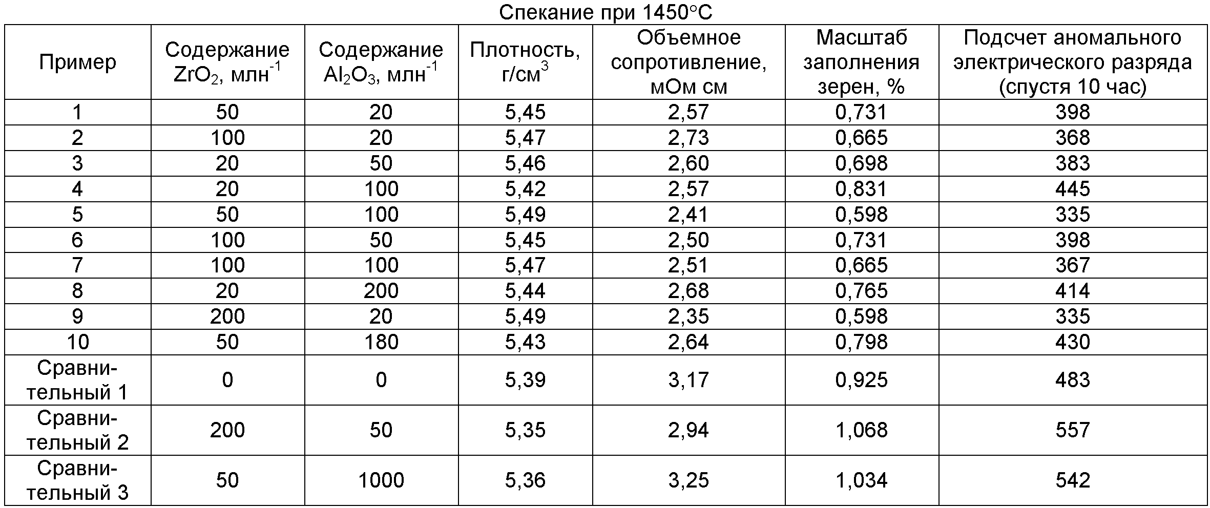 Изобретение относится к галлийоксид-цинкоксидной распыляемой мишени для получения прозрачной электропроводной пленки. Высокоплотная галлийоксид-цинкоксидная спеченная распыляемая мишень для формирования прозрачной электропроводной пленки содержит 20 млн-1 по массе или более каждого из оксида циркония и оксида алюминия, при этом общее содержание таковых составляет менее чем 250 млн-1, а величина объемного сопротивления мишени составляет 3,0 мОм·см или менее. Прозрачная электропроводная пленка сформирована на стеклянном субстрате путем напыления с использованием галлийоксид-цинкоксидной мишени. Пленка содержит оксид циркония и оксид алюминия, количество каждого из которых составляет 20 млн-1 по массе или более, а общее содержание – менее чем 250 млн-1. Способ формирования прозрачной электропроводной пленки включает проведение напыления с использованием галлийоксид-цинкоксидной мишени. Получается прозрачная электропроводная пленка, способная поддерживать предпочтительный коэффициент пропускания в оптической области и электрическую проводимость. 3 н. и 4 з.п. ф-лы, 1 табл.