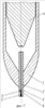 На фиг.4 изображен вариант выполнения противооткатного приспособления в виде конусообразной насадки 13, надеваемой на носовую часть пневмопробойника. Во время обратного хода насадка 13 удерживается тягами 14, прикрепляемыми за имеющиеся заводские отверстия 15 в хвостовике 12. Насадка снабжена гибкими проволочными «усами», образующими т.н. ворс 16.