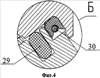 На фиг.4 позицией 29 обозначено второе уплотнительное кольцо. В изображенном варианте это кольцо показано в виде вытянутого в радиальном направлении сечения с закруглениями со стороны цапфы и шарошки, хотя может иметь и другую известную форму сечения. Кольцо может также армироваться по поверхностям контакта износостойкими покрытиями (не показано). На этой же фиг.4 показан вариант уплотнения, когда вместо эластичного внутреннего кольца (26 на фиг.3) установлена круглая поджимная пружина 30.
