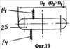 На фиг.14 система снабжена двумя предназначенными для стыковки пакерами 11, которые закреплены в системе на разных уровнях. Предназначенный для стыковки со снабженной наконечником 5 колонной 4 пакер 11 связан общей линией 14 – коллектором с общим блоком 15 и с одним из пакеров 11 каждого из устройств 8. Остальные же пакеры 11 этих устройств и другой предназначенный для стыковки с насосом 19 пакер 11 связаны отдельными линиями 14 со своими блоками 15.