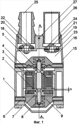 На Фиг.1 представлен описываемый насос, на Фиг.2 – разрез А-А на Фиг.1.