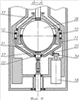 Для уменьшения различий в коэффициентах передачи К2В при углах разных знаков кинематическая связь электромагнита 18 с поворотной рамой выполнена несимметричной.