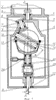 Усилитель управляющего воздействия содержит корпус 1 с установленным на нем силовым электродвигателем 2. На корпусе 1 закреплена шестерня 3, он также снабжен подшипниками 4, на которых смонтирован вращающийся корпус 5 с валом 6, соединенным с валом электродвигателя 2. Во вращающемся корпусе 5 на подшипниках 26 установлены два идентичных фрикционных звена 27 со сферическими рабочими поверхностями, снабженные шестернями 28, взаимодействующими с неподвижной шестерней 3, на подшипниках 10 установлена поворотная рама 11, а на подшипниках 12 – фрикционное звено 21, аналогичное звену 21, показанному на фиг.1 и 2, вал 13 которого является выходным. Кроме того, в корпусе 5 размещен управляющий поворотный электромагнит 18, вал которого через рычаг 19 связан с поворотной рамой 11. На поворотной раме 11 закреплена ось 14 и две оси 29. На подшипниках 15 оси 14 смонтировано фрикционное звено 16 со сферической рабочей поверхностью, снабженное шестерней 17. Для уменьшения суммарного момента инерции элементов, кинематически связанных с валом управляющего электромагнита 18, фрикционное звено 16 выполнено полым. На подшипниках 30 осей 29 смонтированы два одинаковых фрикционных звена 31, аналогичных звену 21, ролики 32 которых находятся во фрикционном контакте со сферическими рабочими поверхностями соответствующих звеньев 27. Фрикционные звенья 31 снабжены шестернями 33, взаимодействующими с шестерней 17. Ось подшипников 10 (ось поворота поворотной рамы) выполнена перпендикулярной осям вращения корпуса 5 и всех фрикционных звеньев (16, 21, 27 и 31) и пересекающейся с ними в центрах сферических рабочих поверхностей звеньев 16 и 27. При этом оси вращения корпуса 5 и фрикционных звеньев 21 и 27, как и оси вращения фрикционных звеньев 16 и 31, выполнены параллельными между собой. Между поворотной рамой 11 и стенкой вращающегося корпуса 5 установлена пружина 24.