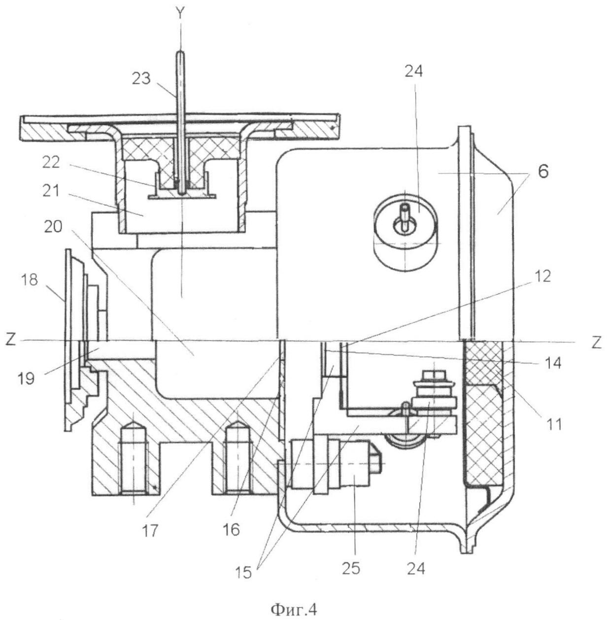 Масс-спектрометр 5 содержит два постоянных магнита 28 размером 20×20×5 мм3 из сплава SmCo5 и два полюсных наконечника 27 такого же размера, замкнутых магнитопроводом 29 и выполненных из железа «армко». Полюсные наконечники 27 охватывают с двух сторон стенки прямоугольной камеры индикатора 20 и формируют в ней однородное магнитное поле, равное 4335 Гс, направленное перпендикулярно движению ионного пучка и отклоняющее ионный пучок в сторону коллектора 22.