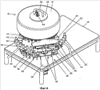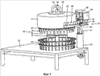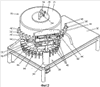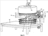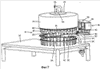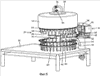 Тридцать две подставки 24 для бутылок поддерживаются, располагаясь по кругу, над столом 12, при этом каждая подставка может двигаться по вертикали с помощью кулачкового механизма (на чертежах не показано). Резервуар 14, клапаны 18 и подставки 24 соединены таким образом, что вращаются с одинаковой скоростью, при этом каждая подставка всегда приблизительно располагается под одним из клапанов.