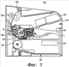 Установочный отсек 30 сформирован над отсеком 20 для хранения проявителя в корпусе 11. Установочный отсек 30 может быть сформирован с разнообразными формами в той мере, насколько установочный отсек 30 сможет обеспечить фиксирование картриджа для проявителя 50 в проявляющем картридже 1. В этом варианте осуществления установочный отсек 30 сформирован по существу в виде полости или камеры, которая располагается внутри от наружной поверхности корпуса 11. Как иллюстрировано на ФИГ. 1, входное отверстие 30а установочного отсека 30 сформировано на поверхности корпуса 11 так, чтобы картридж для проявителя 50 мог быть вставлен параллельно проявляющему валику 13. Приводной элемент (не показан) для вращения транспортирующего элемента для выгрузки проявителя 53 (см. ФИГ. 6) в картридже для проявителя 50 может быть размещен в донной части установочного отсека 30.