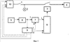 При включении тумблера 1 напряжение поступает на вход сигнальной лампочки 2 и через контакты задатчика 3 временных интервалов (реле) на вход вибрирующего устройства 4 (фиг.1). Срабатывание задатчика 3 временных интервалов осуществляется в момент засыпания водителя путем выдачи сигнала от тензодатчиков 5, закрепленных на руле, через элемент НЕ 6, ключ 7, первый вход элемента ИЛИ 8 на вход задатчика 3 временных интервалов.