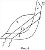 На фиг.6 показано, как изменяя натяжение стяжек 11 можно изменять угол наклона спинки 2 корпуса относительно сиденья 3. При этом стяжки 11 проходят частично внутри боковых предохранительных приспособлений 4, не создавая неудобства сидящему в кресле ребенку. Противоположное усилие, стремящееся увеличить угол наклона спинки, создается давлением надуваемых шлангов (на фиг.6 не показано).
