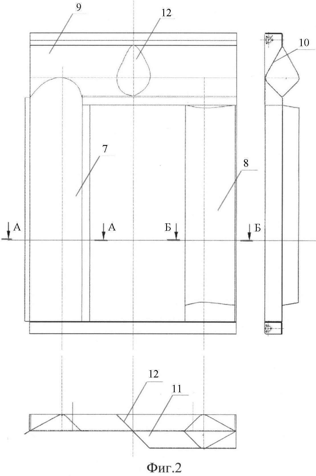 На фиг.3 – сечение А-А вогнутой вертикальной стойки и сечение Б-Б выпуклой вертикальной стойки сцепной рамы.