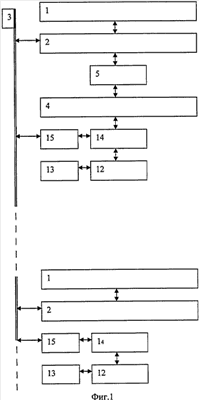 Путь, по которому эта информация поступает в ЭВМ 4, включает радиоканал связи (не показан), стационарные антенные блоки 13, стационарные радиомодемы 12 цифрового радиоканала связи, а также контроллеры 14 связи.