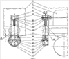 Установка четырех запасных колес 10 на КТС не только повышает его плавучесть, но и обусловлена требованиями эксплуатации. Они устанавливаются на днище колесной платформы 1 четырьмя креплениями и закрываются кожухами. Их установка и снятие производятся вручную, а при необходимости – с использованием домкрата путем поднятия соответствующей части КТС.