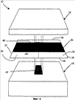 Как это лучше всего видно на фигурах 2 и 3(b), перегородка 30 имеет верхнюю 34 и нижнюю 36 поверхности, два боковых края 38, 40 и два конца 37, 39 и в целом имеет прямоугольную форму. Перегородка 30 снабжена лентой 42, ширина которой меньше ширины перегородки 30 и которая охватывает перегородку 30 по линии движения ленты (показана только на фигуре 3(b)), определяемой перегородкой 30. Концы ленты 42 соединены, так что формируется непрерывная петля. Линия движения ленты определяется сужением на двух концах 37, 39, которое формируется вырезами 44 на каждом из концов 37, 39 перегородки 30 и служит для предотвращения бокового смещения ленты 42 относительно перегородки 30. Перегородка 30 прикреплена или приклеена к корпусу 12 с помощью клеящего вещества (не показано), нанесенного на боковые края 38, 40 перегородки 30 или в любом другом удобном месте. В альтернативном варианте перегородка 30 и корпус 12 могут быть выполнены как одно целое.