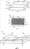 Как показано на фигуре 7, корпус 12 может быть изготовлен путем свертки и склеивания одной плоской развертки, изготовленной вырезанием и выполнением линий складок из листового материала, такого как пластмасса, картон или картон для складных коробок, как можно видеть на фигуре 5. Развертка содержит три панели 76, 78, 80 и продавлена по четырем линиям 82, 84, 86, 88. Панель 76 заворачивается и прикрепляется к нижней поверхности панели 80 для формирования нижней стороны корпуса. Части между продавленными линиями 82 и 84, а также 86 и 88 формируют боковые стенки 22, 24 корпуса 12.