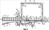 Цепи 38 приводятся в действие непрерывно с постоянной или изменяющейся скоростью при помощи известного сервомотора (не показано) и образуют путь R планочных элементов 35, который, в показанном примере, представляет собой прямоугольный путь с одной стороной, параллельной пути Т.
