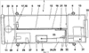 В машинном отделении 12 находится топливный бак 30. Он снабжает горючим находящийся в моторном отделении 13 моторно-компрессорный блок 31 для нагнетания сжатого воздуха в загружаемую емкость 2. Моторно-компрессорный блок 31 состоит из дизельного мотора и винтового компрессора, приводящегося в движение дизельным мотором, и служит для привода электрогенератора и воздуходувки пылеулавливающей установки 27. Помимо этого моторно-компрессорный блок 31 имеет вход 32 для транспортирующего воздуха для подачи воздуха из силоса или автоцистерны с сыпучим материалом.