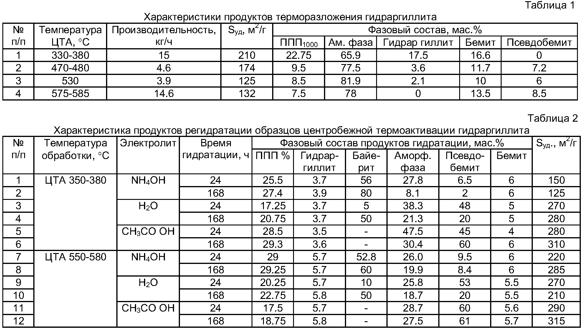 K=0,15-0,3 моль кислоты/моль Al2O3, а также эта- или гамма-форм оксида алюминия, при комнатной температуре в течение 30 мин;